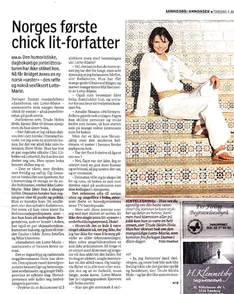“Norges første chicklit forfatter.” Aftenposten
