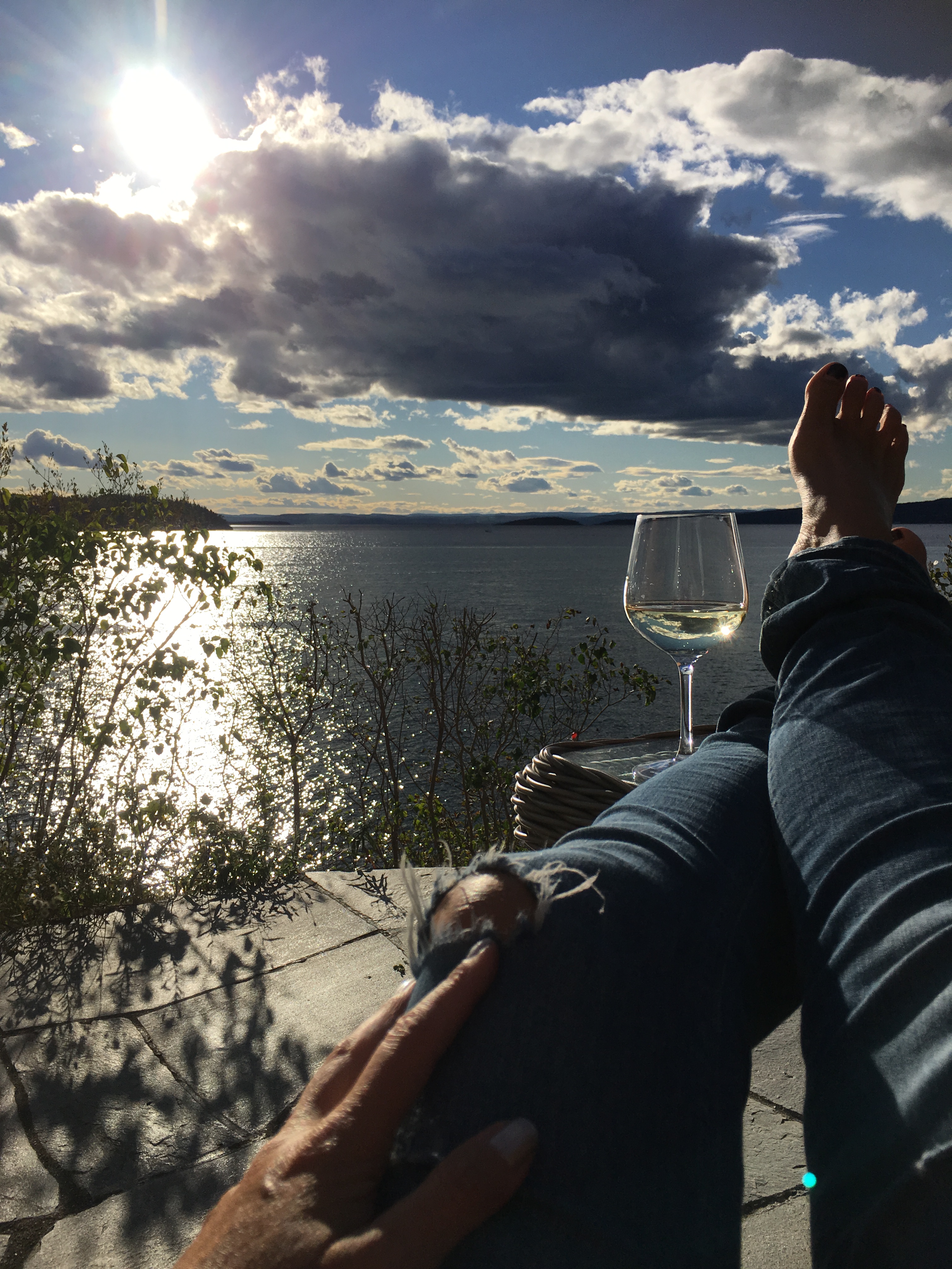 Dette er 7.9. Klokken er 20.23, og Lill og jeg tar oss en kveldsdukkert, selvsagt med rosé i glasset. 🙂